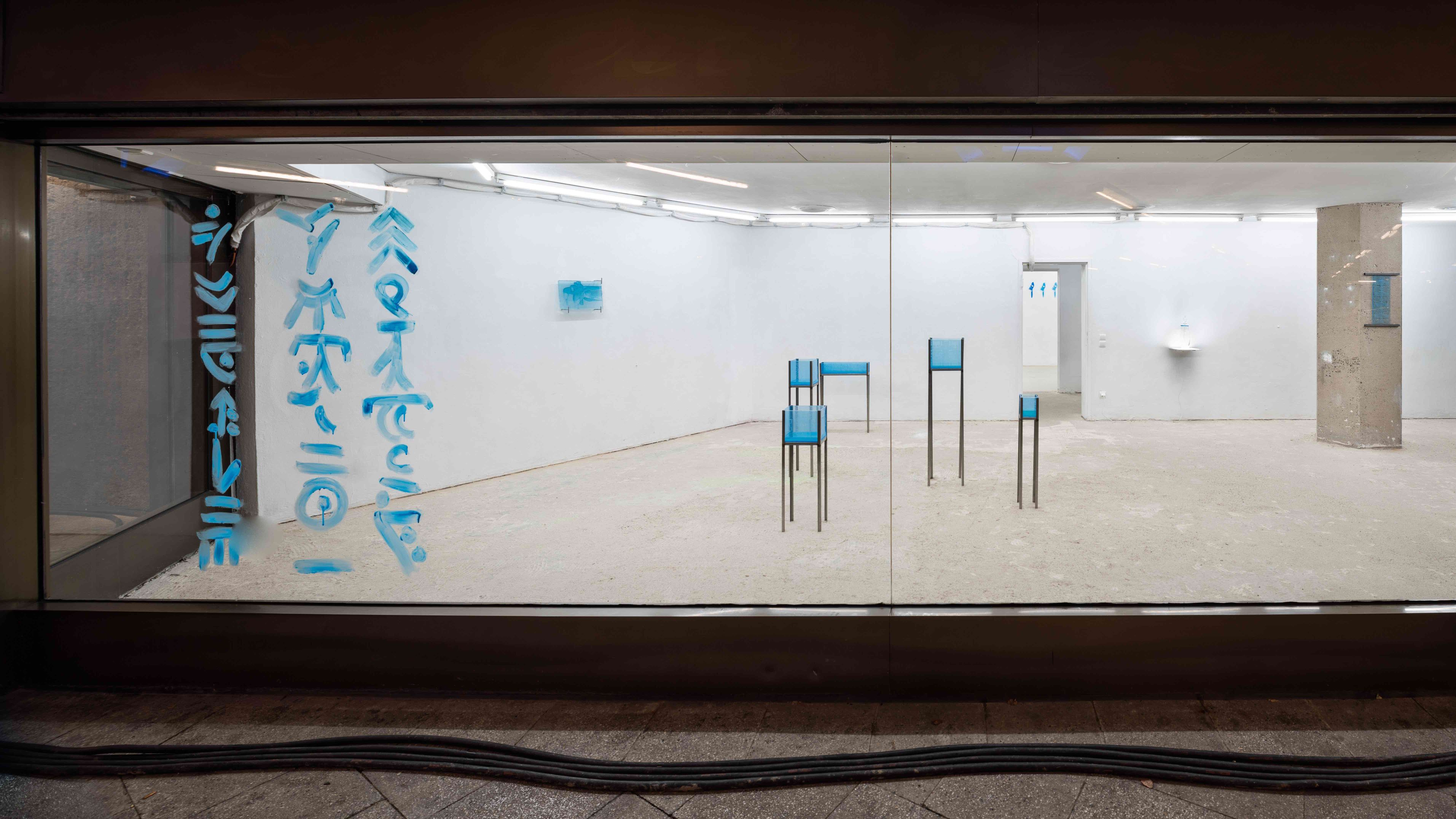 Not for nothing does one feel reminded of a laboratory setting. In an era of hedonistic self-expression and optimization, Constantin Hartenstein makes makes mechanical and often hidden processes visible. In performative acts during the opening a performer acts as a laboratory assistant and activates the liquids.