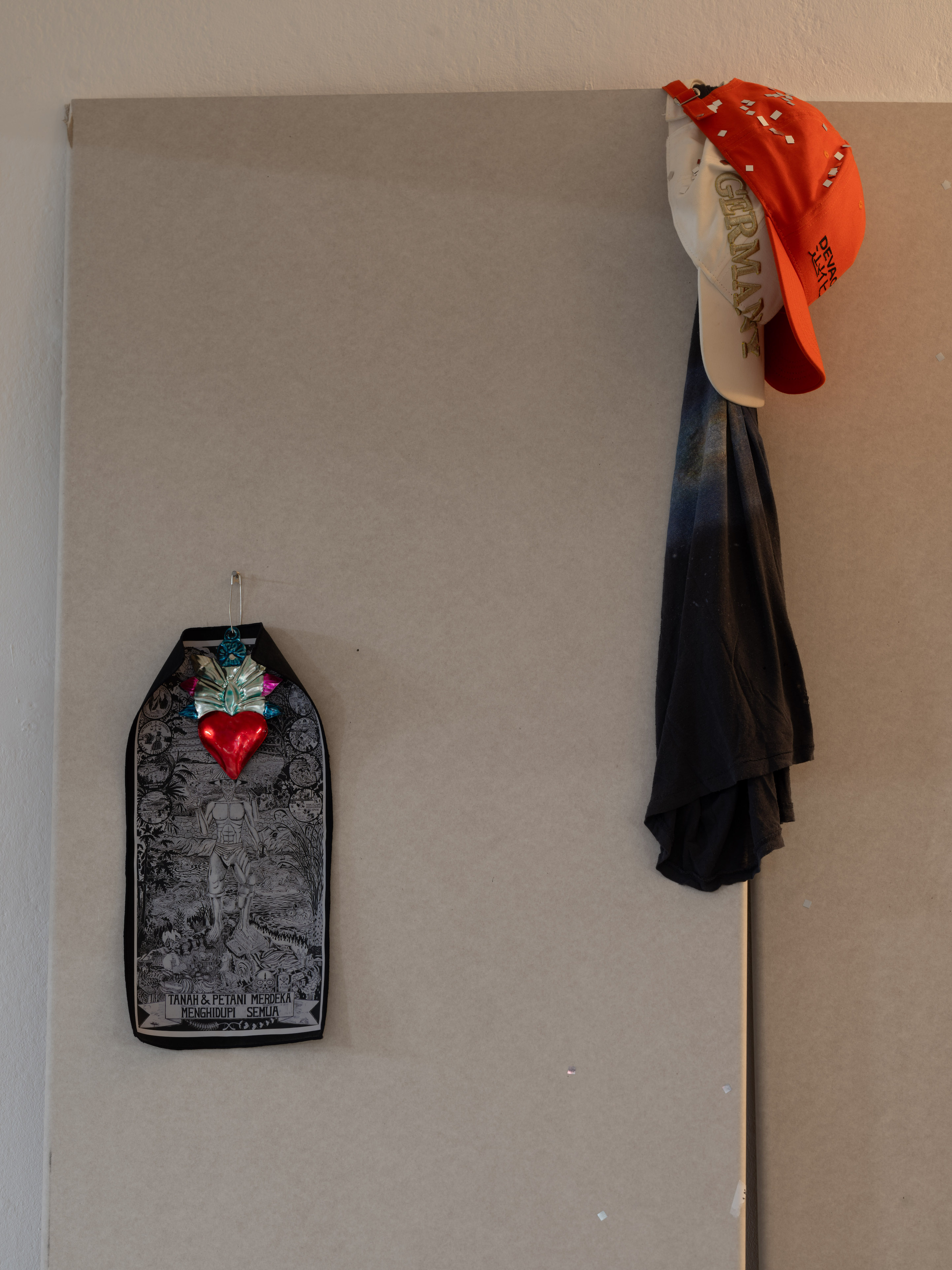 Ergänzt wird der Film durch True Story, eine sich fortlaufend verändernde Installation alltäglicher Objekte, die von der Wand der Wohnung der Künstler*in stammen. In den Ausstellungsraum übertragen, verwischen diese Dinge die Grenze zwischen Leben und Präsentation und formen ein vielschichtiges Selbstporträt, in dem das Zuhause zum Archiv wird und das Archiv zur Identität.