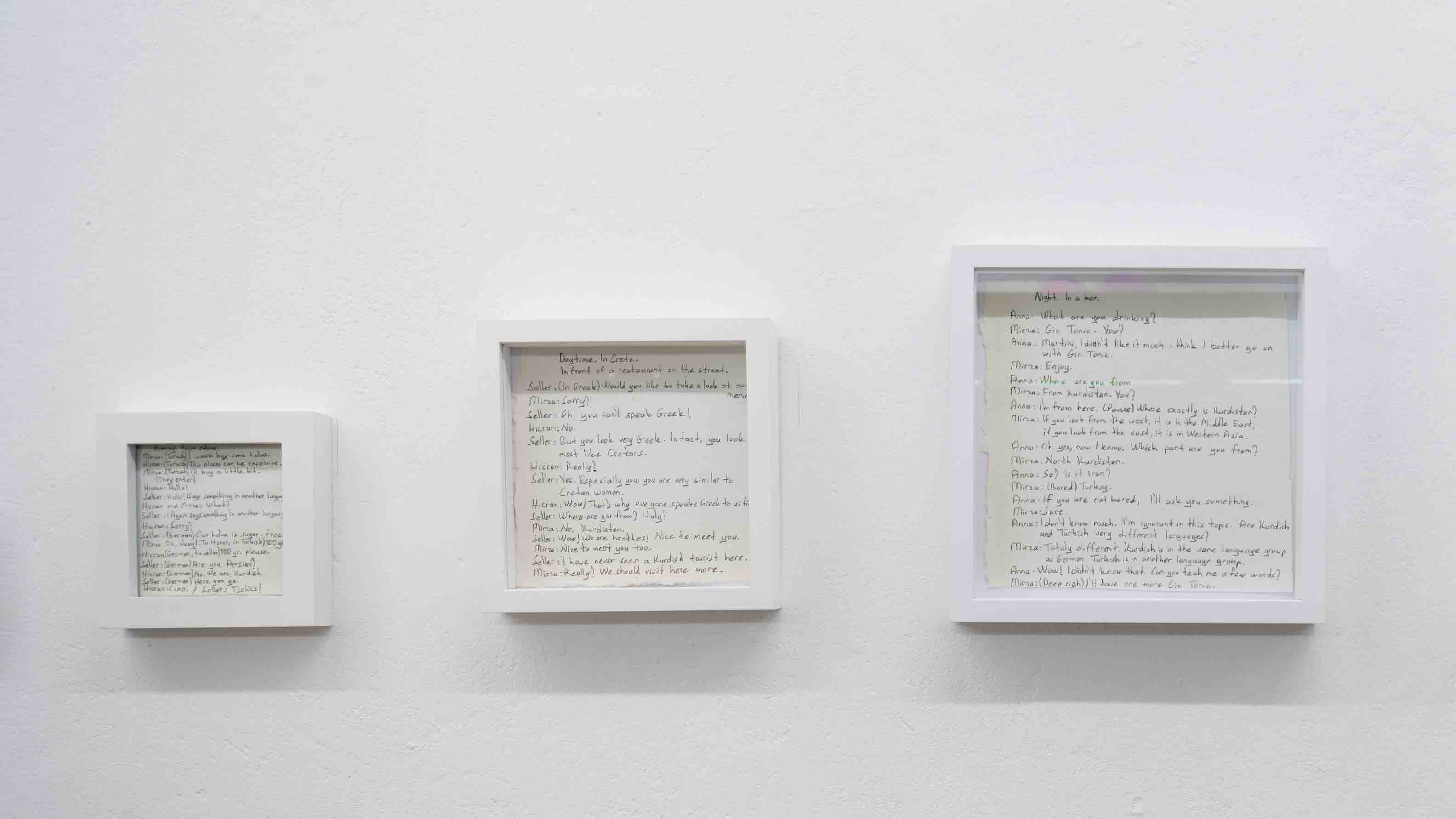 Beide KünstlerInnen setzen sich schon über Jahre in ihren Arbeiten mit dem Thema Identität auseinander. Ihre eigene, die kurdische Identität steht vor allem bei dieser Arbeit im Fokus. Ausgehend davon hinterfragen sie Themen wie Kolonialismus, Postkolonialismus und Rassismus. Sie schrieben Texte oder bearbeiteten Geschichten aus ihren Biografien. Diese wurden in Audio- und Videoinstallationen verarbeitet.